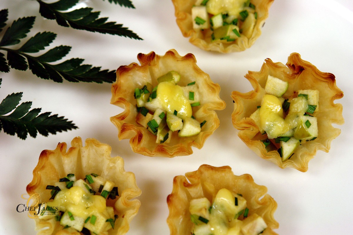 Tequila Shrimp with Lime & Cilantro, Spiced Pear & Brie Quesadilla, Tenderloin Crostini, Chestnut Rumaki, Sweet Potato Cakes with Maple Syrup, Assorted Mini Quiche